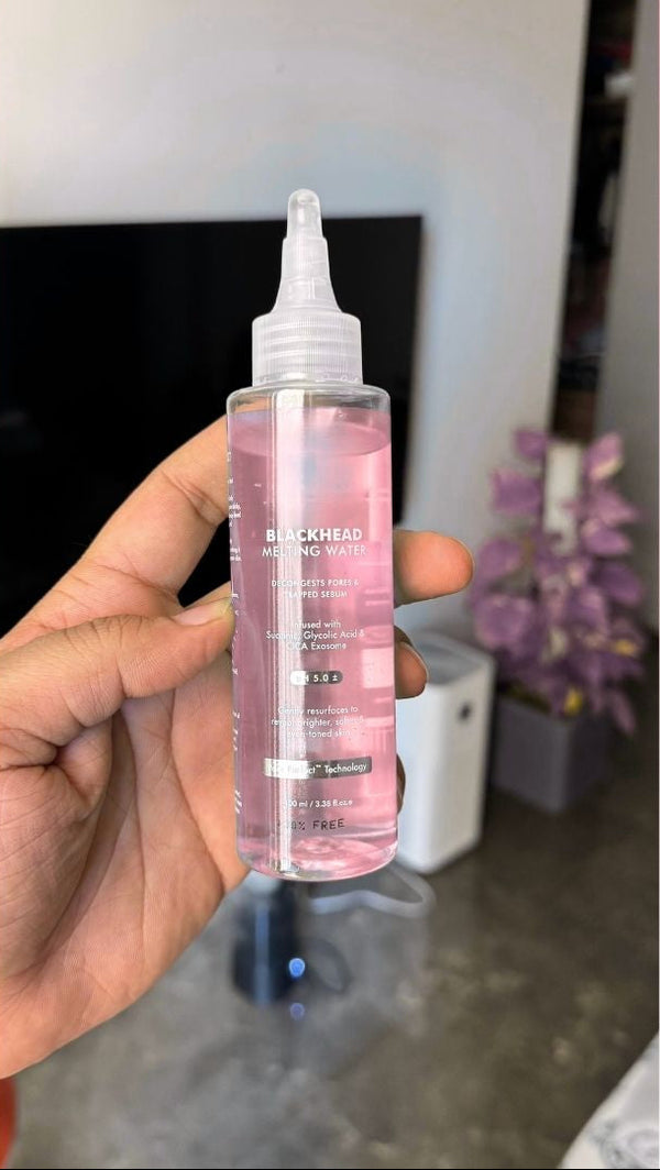 Blackhead Melting Water is a gentle pore care liquid designed to soften and dissolve blackheads, loosen trapped oil, and clear congestion without harsh scrubbing or irritation.
