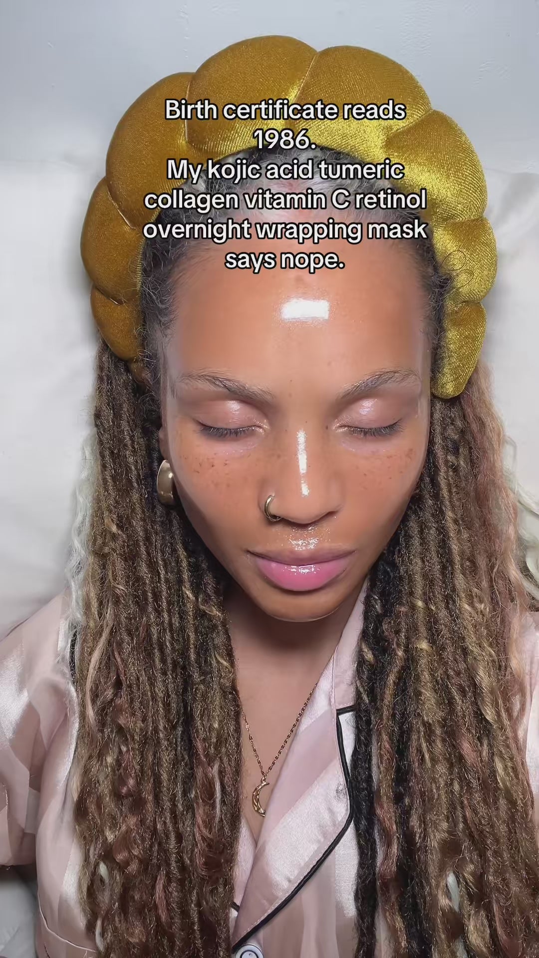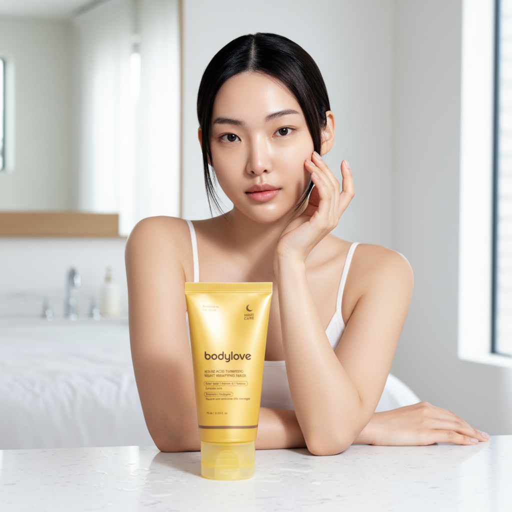 BodyLove™ Kojic Acid Turmeric Overnight Wrapping Mask targets dark spots at the root while you sleep.