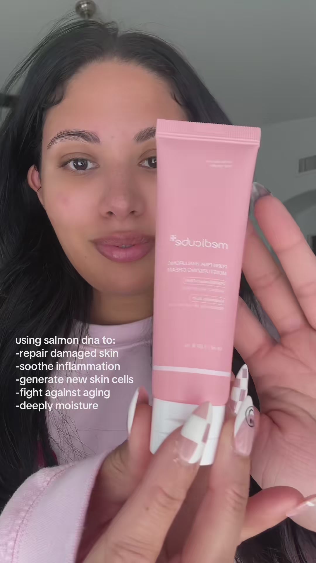 It is a pink peptide cream with PDRN, designed to absorb fast, hydrate deeply, and keep skin comfortable all day.